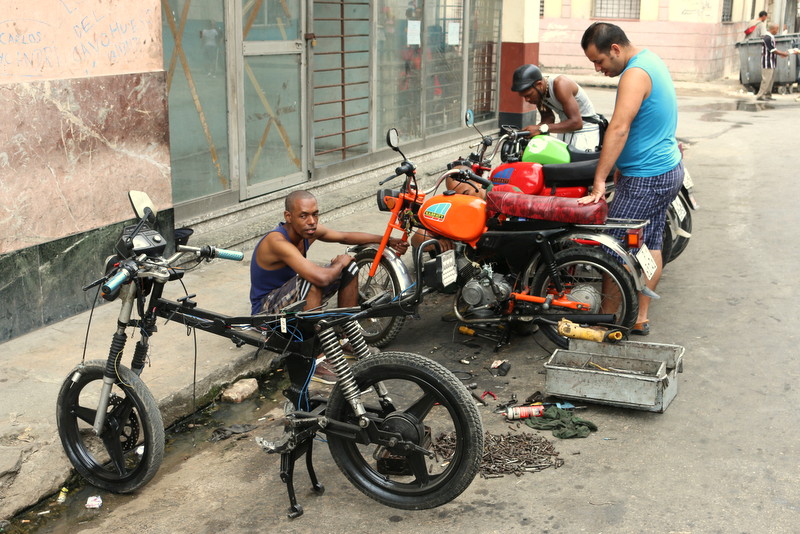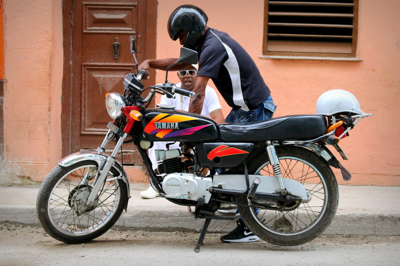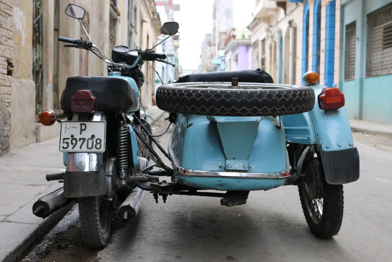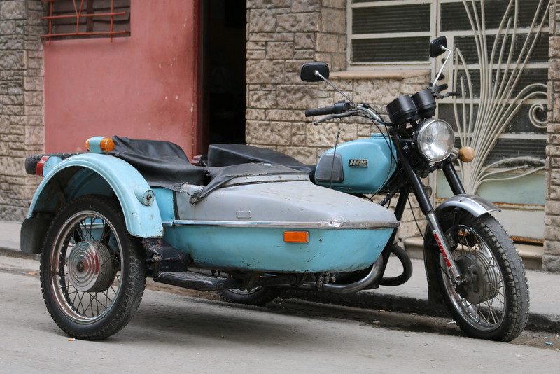 This Russian Ural with a sidecar looked like it had seen better days. Due to the difficulty of getting replacement parts, its all about keeping bikes running in Cuba.