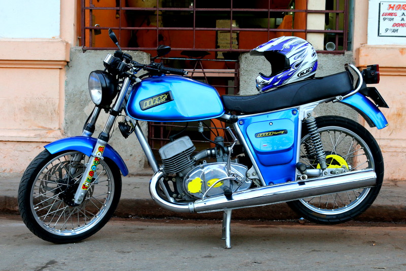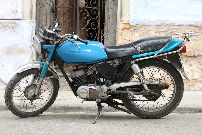 So I recently spent a few weeks working in Havana, Cuba. While I was there I tried to capture the current motorcycle scene with photos. The majority of bikes are small displacement(less than 350cc) and about 50/50 2-stroke and 4-stroke. German-made MZ 250’s are the most common, followed by Suzuki GN125’s and their clones. Most of the bikes are being kept running by any means possible since spare parts are very scarce, mostly due to the US trade embargo.
