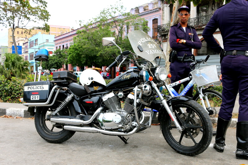 Most of the police bikes are mid-eighties Yamaha 250 Viragos. Some of the motorcycle cops are on Moto Guzzi Nevada 750’s.