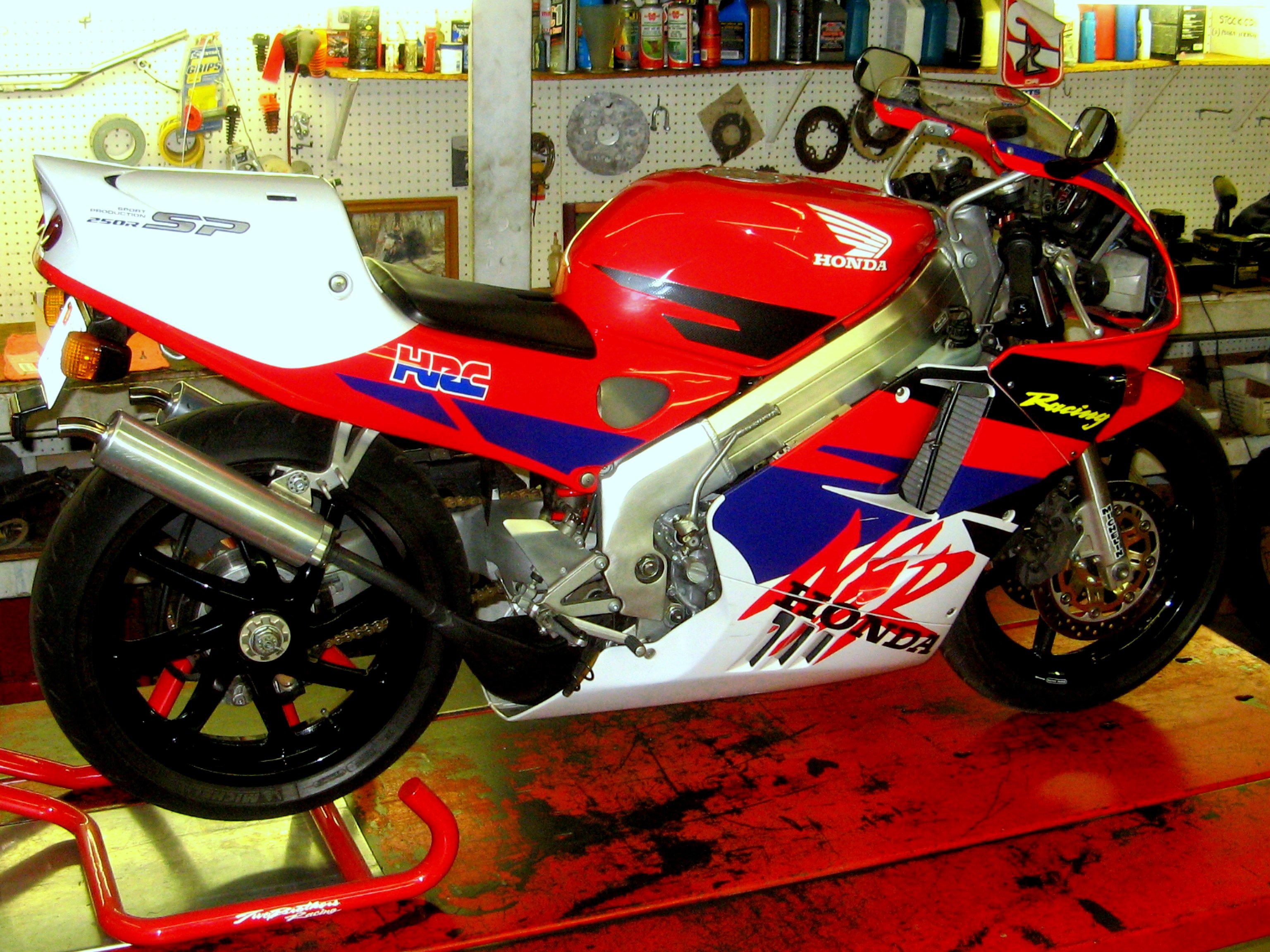 I always had a place in my heart for 2-stroke race replicas, and when I saw this bike I just HAD to ride it! It was just the perfect blend of performance, looks, and history. I researched the NSR’s for a while and this SP model is the highest spec of three different models offered of this bike. The main differences are magnesium wheels, dry clutch, and fully adjustable suspension.